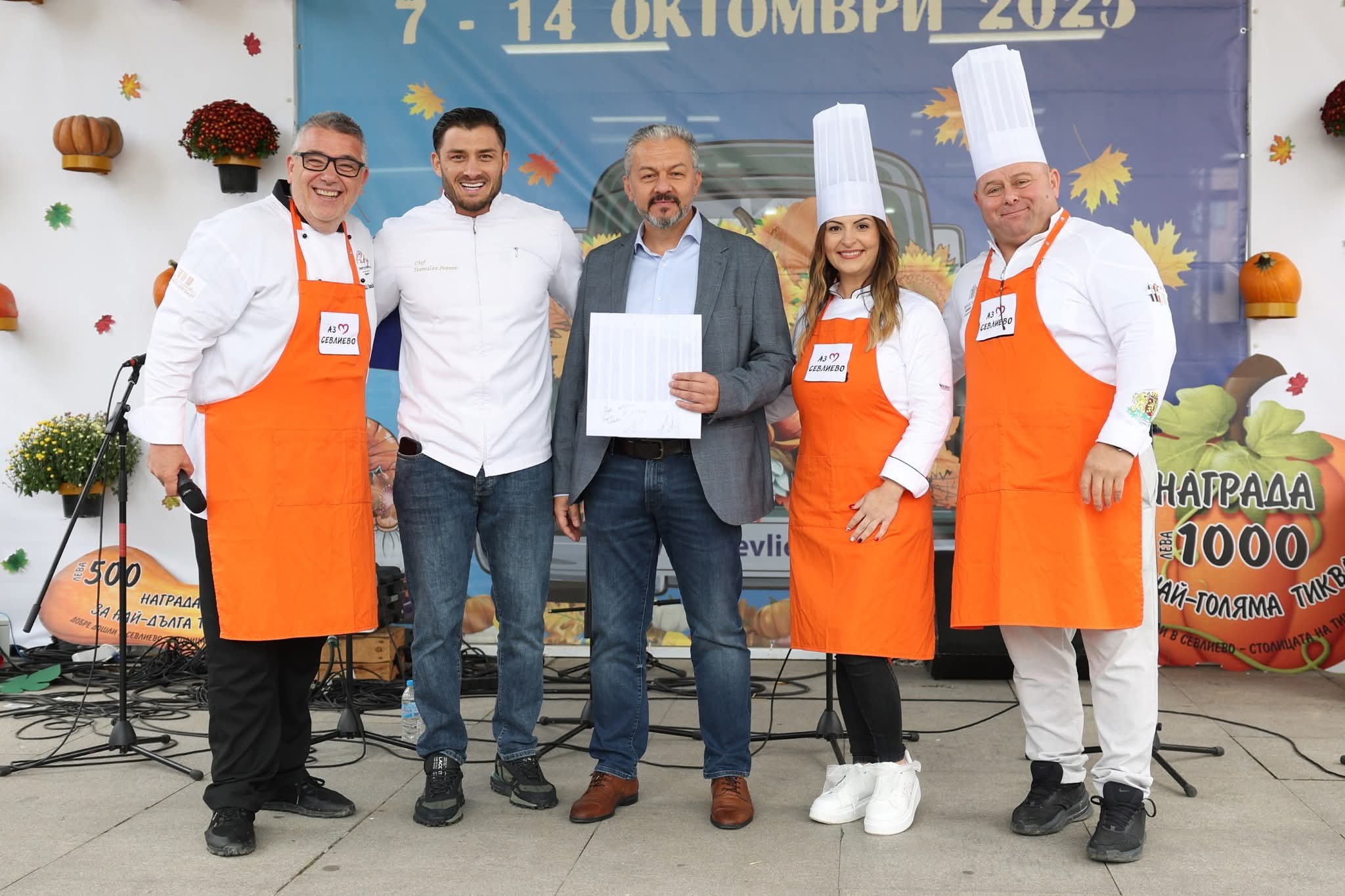И тази година Севлиево постави кулинарни рекорди. Над 500 порции шоколадов фъч с мус от тиква и карамелен сос приготви и раздаде на смаяната публика в Севлиево победителят от пети сезон на Hell's kitchen шеф Станислав Иванов.